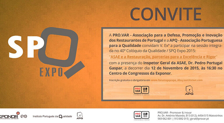 A PRO.VAR coordenará no decorrer da SPQ Expo 2015 nos dias 12 e 13 de Novembro na Exponor (Matosinhos) duas sessões paralelas dirigidas ao setor da Restauração..